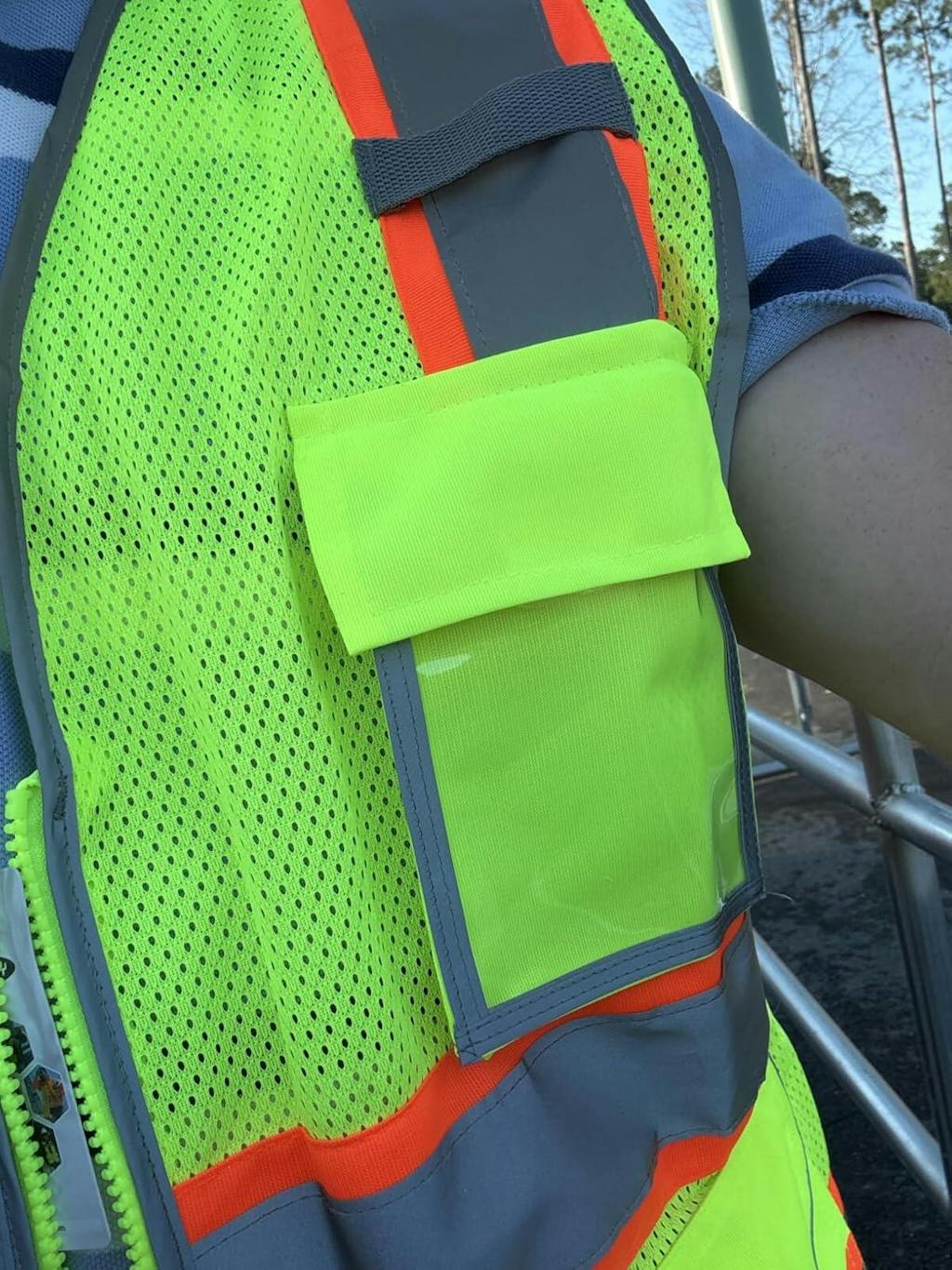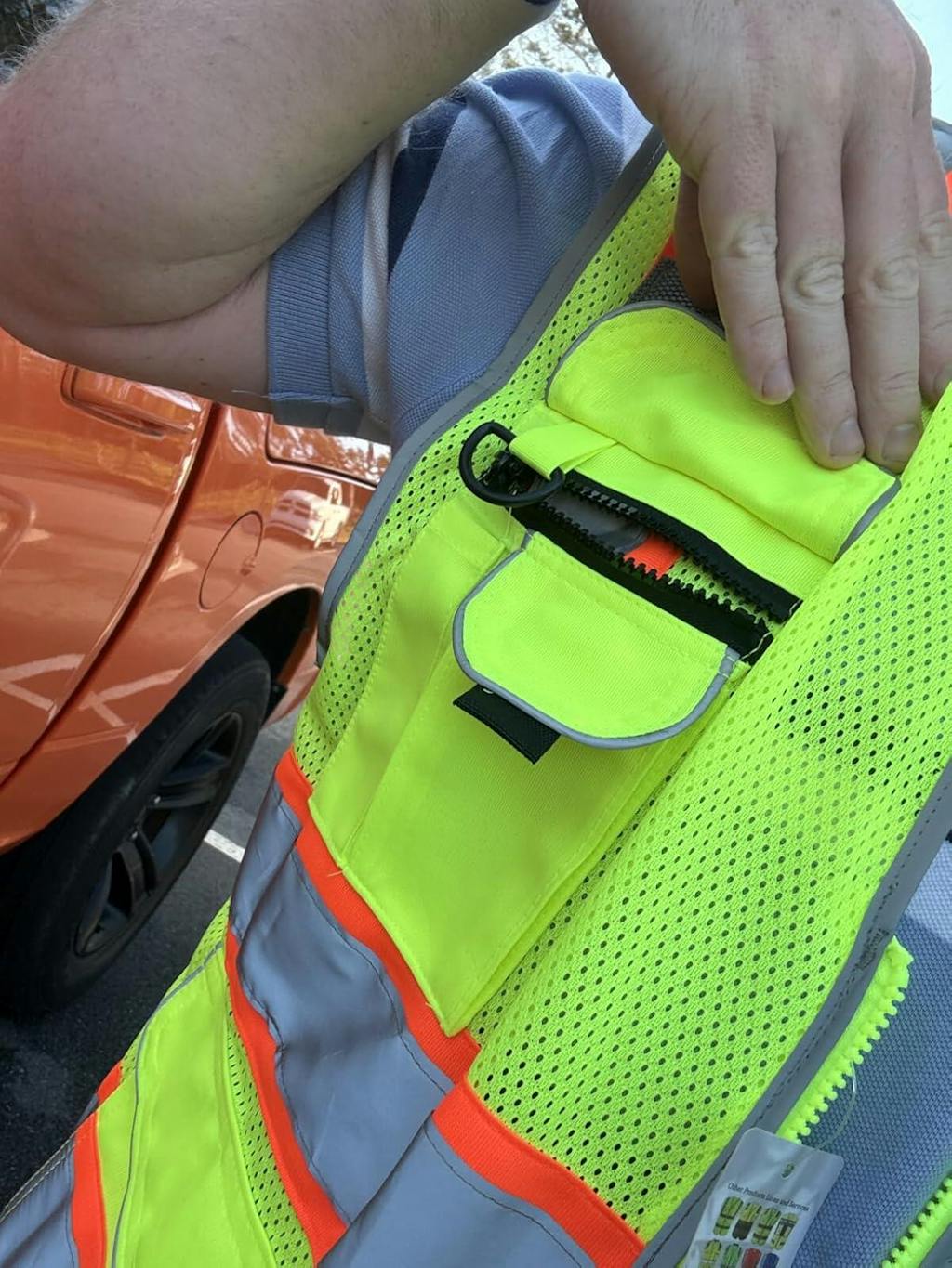 - High Visibility: Fluorescent color fabric with four 2-inch reflective strips outlined in orange trimming for 360-degree visibility.